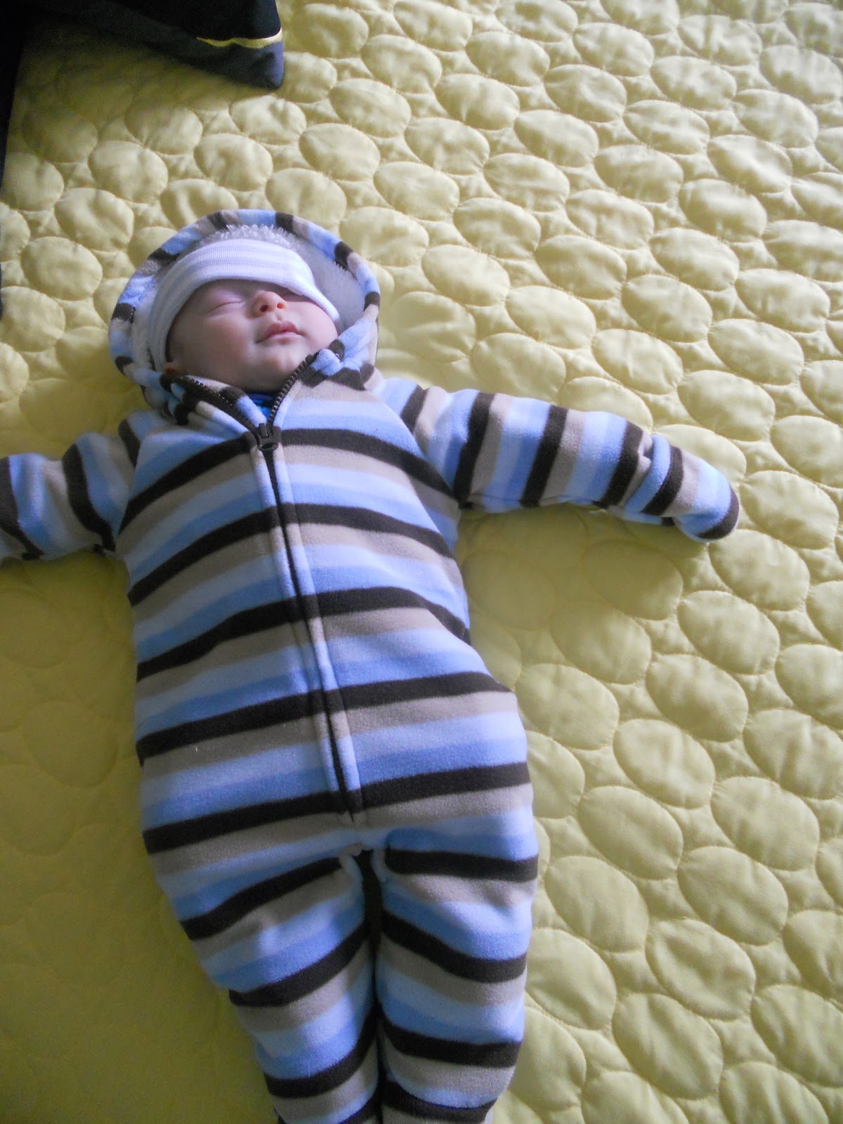 Trying out his crib....he still sleeps in the little rocker thing in our room though. I never realized how hard it is to get out of bed and walk 10 feet in the middle of the night ;).
